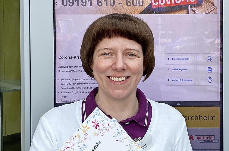 Am bundesweiten Aktionstag „Tag des Patienten“, 26. Januar, erhalten die stationären Patienten des Klinikums in  Forchheim  eine Grußkarte zum Frühstück und einen Kugelschreiber. Mit diesen Präsenten stellt Sandra Roth sich als Patientenfürsprecherin vor.