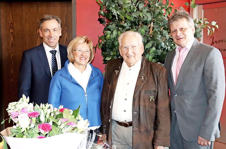 Bestens gelaunt feierte Franz Wellein mit Ehefrau Gerlinde (87), der Familie und Freunden seinen 95. Geburtstag. Landrat Alexander Tritthart und Bürgermeister Norbert Walter sowie die Dritte Bürgermeisterin Renate Engelhardt gratulierten dem Jubilar.