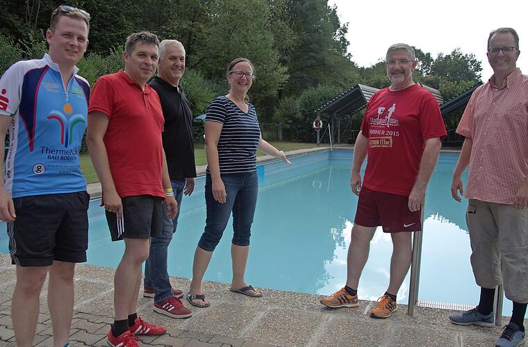 Seit neun Jahren ist der Vorsitzende der SPD-Fraktion im bayerischen Landtag, Markus Rinderspacher, mit der Sommeraktion der "Roten Radler" im Freistaat unterwegs. Vorletzte Station der Tour und letzter Halt in Bayern war ein Stopp beim Freibad in Autenhausen. Ein "Vorzeigeprojekt, bei dem es knirscht", wie Carsten Höllein, SPD-Kreisvorsitzender und Stadtrat in Seßlach, anmerkte. Denn so gern die Teilnehmer der Radgruppe sich erfrischt hätten: Wegen diverser Probleme (erst wegen Erkrankung des Schwimmmeisters, zuletzt wegen der Qualität des Wassers) muss das idyllische Bad - wie mehrfach berichtet - in dieser Saison geschlossen bleiben. Auch, wenn "Cheftechniker" Dominik Fick vom Förderverein die Einstufung der gemessenen Werte als "krebserregend" als überzogen kritisierte, weil die strengen Grenzwerte sonst für Hallenbäder gälten, in denen Dämpfe - anders als bei Freiluftanlagen - nicht abziehen könnten. "Also wir sind startklar, falls doch noch jemand sagt, wir dürfen", verkündete zwar Martina Kilian mit Blick auf die vom Förderverein top in Schuss gehaltene Anlage, doch richtet sich der Blick der Zweiten Vorsitzenden längst nach vorn, auf die Umwandlung der Anlage in ein Naturbad. Mit der aus den 70er Jahren stammenden Technik werde man keine besseren Werte mehr erzielen, gab sie zu.