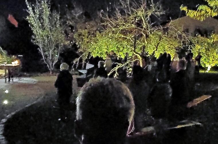 Nach wie vor wünschen sich viele Menschen trotz der früh einsetzenden Dunkelheit und der kühleren Temperaturen die Fortsetzung der Freiluftgottesdienste an der Lourdesgrotte. Jeden Sonntagabend um 17 Uhr feiert die St.-Georgs-Pfarrei deshalb bis auf weiteres eine heilige Messe. Die Grottenbaugruppe hat die Anlage mit Beleuchtungskörpern versehen, die für eine stimmungsvolle Atmosphäre vor der Lourdesgrotte sorgen.