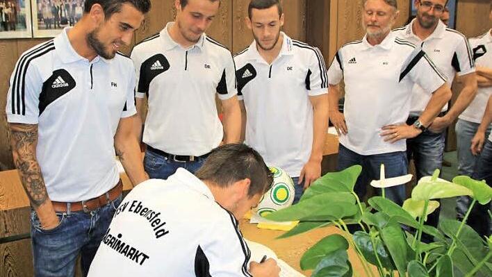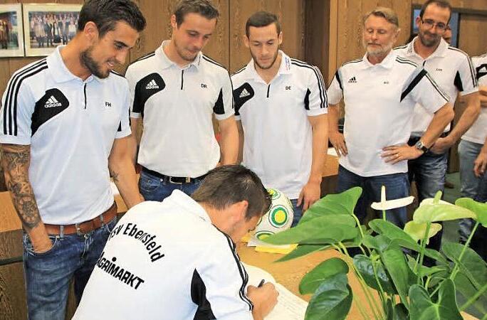 Storath hatte die Landesligisten zusammen mit ihrem Trainer Klaus Gunreben und Vorsitzendem Norbert Böhmer ins Rathaus eingeladen, damit sie sich im goldenen Buch der Gemeinde verewigen. "Ihr seid Werbeträger für den Markt Ebensfeld", sagte der Bürgermeister und merkte an: "Auch wenn es sportlich einmal nicht so läuft, wie ihr es euch vorstellt, haltet zusammen und verliert nicht den Spaß am Spiel."