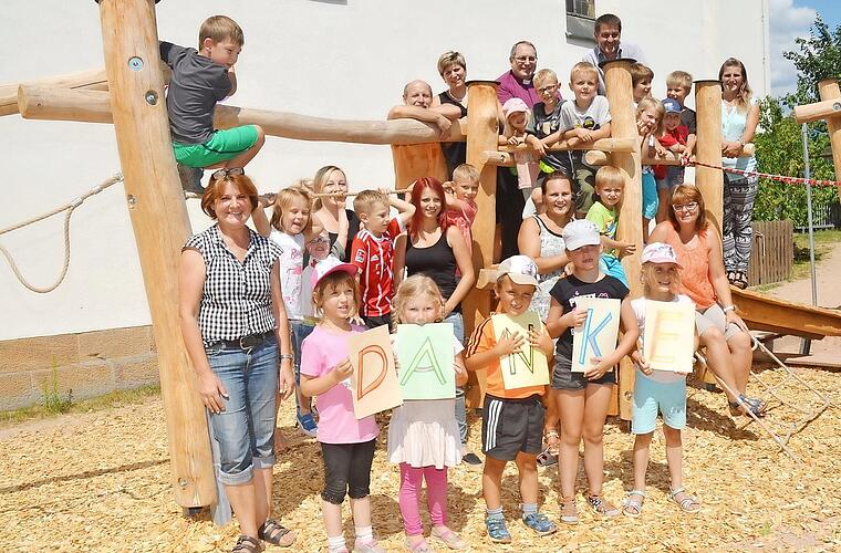Große Freude herrschte bei der Übergabe eines neuen Mehrzweckspielgerätes im Kindergarten "Fridolin" in