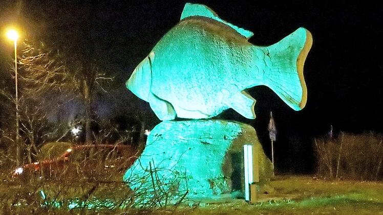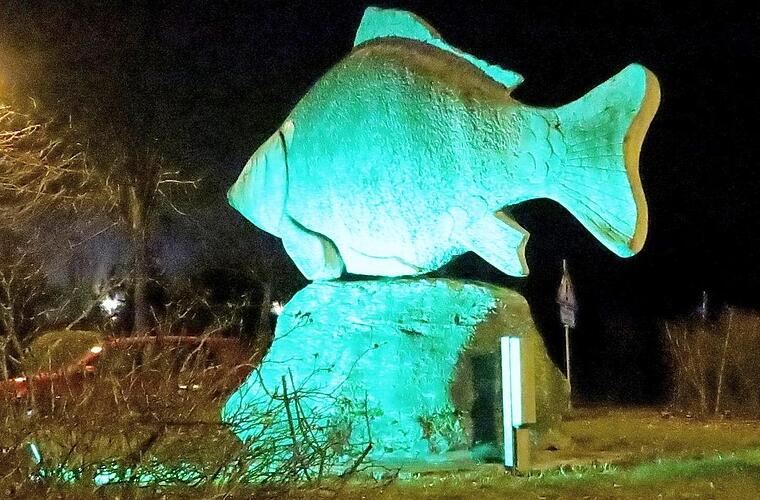 Am heutigen Samstag, 17. März, werden zu Ehren des irischen Nationalfeiertags St. Patrick's Day unter dem Begriff "Global Greening" in der ganzen Welt bekannte Gebäude, historische Denkmäler und Sehenswürdigkeiten in Grün getaucht. Neben dem Eiffelturm und dem Empire State Building reiht sich auch der Höchstadter Steinkarpfen Fridolin ein, der von 20 bis 22 Uhr grün angestrahlt wird. Foto: Johanna Blum (Archiv)