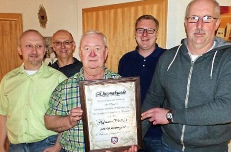 Die Glückwüsche des SV Marienweiher überbrachten Vorsitzender Thomas Kolb und Schriftführer Thomas Laubenzeltner. Beide hatten noch eine besondere Überraschung für den Jubilar dabei: Sie ernannten Friedbert Hofmann in Würdigung seiner außerordentlichen Verdienste und großen Engagements zum Ehrenmitglied.