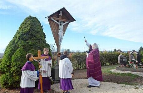 Auf dem Friedhof in Glosberg konnte nun das Anfang des Jahres installierte Kruzifix durch Pater Waldemar Brysch gesegnet werden.