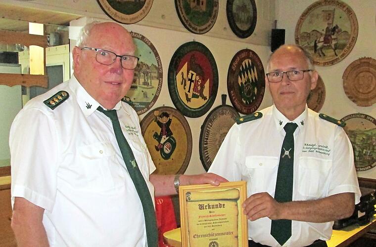 Eine Ära ging bei der Schützengesellschaft Hammelburg zu Ende. Erster Schützenmeister Friedrich Schellenberger dankte ab und legte nach 21 Jahren sein Amt in die Hände seines Stellvertreters Heinz Frö...