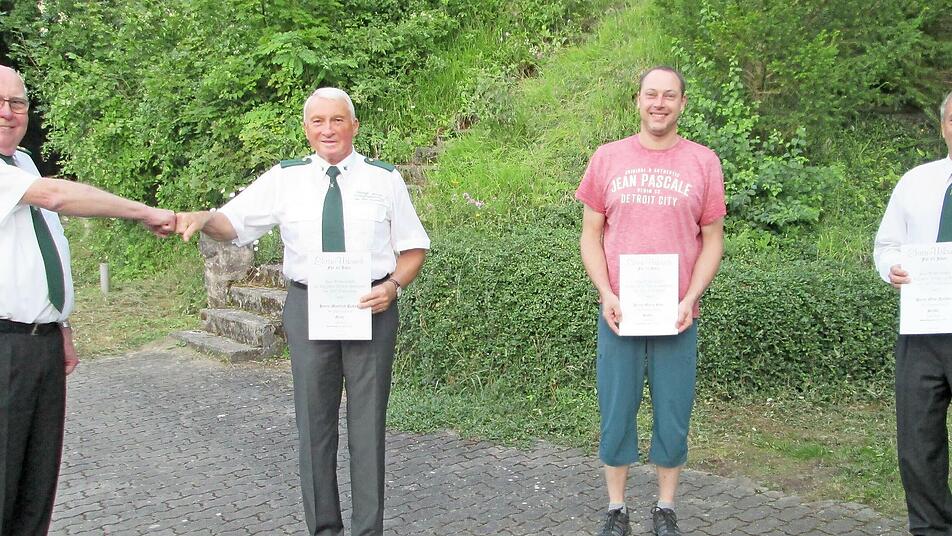 Den bei der Sportlerehrung der Stadt entschuldigten Schießsportler überbrachte die Vize-Bürgermeisterin Elisabeth Assmann die Ehrenurkunde der Stadt und ein Präsent, das Manfred Blesch, Detlef Eigen, Helmut Jurrat, Andreas Ries, Friedrich Schellenberger und Heinz Frötschner entgegennahmen. Manfred Pakull ehrte der Vorstand für 40-jährige, Marco Geis und Otto Amthor für 25 Jahre Treue.