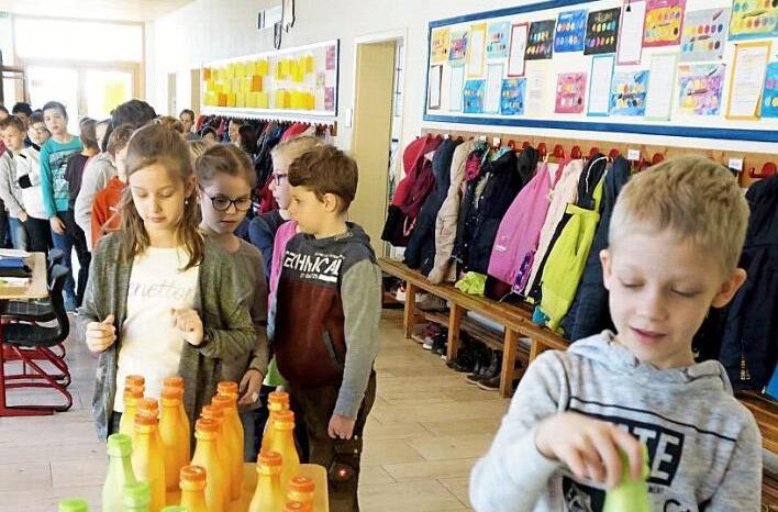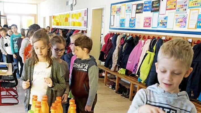 Mit flotten Liedern, die natürlich vom Wasser handelten, wurde der Spender in der Aula des Schulhauses eingeweiht. Die Stiftung beschaffte nicht nur die Trinkstation, sondern auch die Erstausstattung der Schüler mit Trinkflaschen. Zu den ersten Testern gehörten neben Schulleiterin Maria Maibom die Schüler selbt. Regionaldirektorin Gerlinde Eichhorn und Kuratorin Ingrid Brendel von der Stiftung verteilten dazu Trinkflaschen und animierten die Kinder, regelmäßig zu trinken. "Dann läuft es auch mit dem Lernen besser", ermutigten sie die Kinder, ihre Trinkflasche täglich aufzufüllen und so gleichzeitig Müll zu vermeiden.
