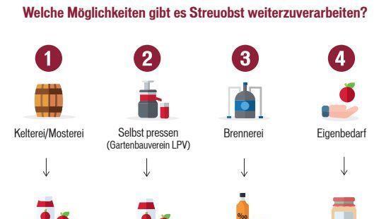 Streuobst ist nicht nur frisch geerntet oder in der Küche zubereitet lecker. Eine wichtige Obstverwertung ist heutzutage zudem der Schnaps. In der Region Forchheim wird das meiste Streuobst aber zu Most und Saft verarbeitet.