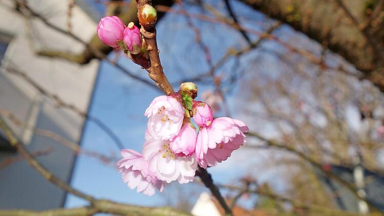 Die ungewöhnlich milden Temperaturen im Januar dieses Jahres haben in der Natur schon die ersten Frühlingsboten wachsen lassen. Vielerorts blühen oder knospen Blumen und Sträucher, die in normalen Jahren frühestens Ende Februar oder gar erst im März ihre Saison haben. So zeigen manche Zierkirschen (unser Bild) schon vereinzelt rosa Blüten. An den geschützten Ecken sind auch schon die ersten Krokusse des Jahres zu sehen, und selbst die Narzissen stehen kurz vor dem Aufblühen. Auch Märzenbecher und Primel sind in den Gärten zu finden. Schneeglöckchen und Winterlinge sorgen bereits seit der ersten Januarhälfte für frühlingshafte Stimmung mitten im Winter. Allerdings der Frost lauert noch überall. Foto: Heike Beudert