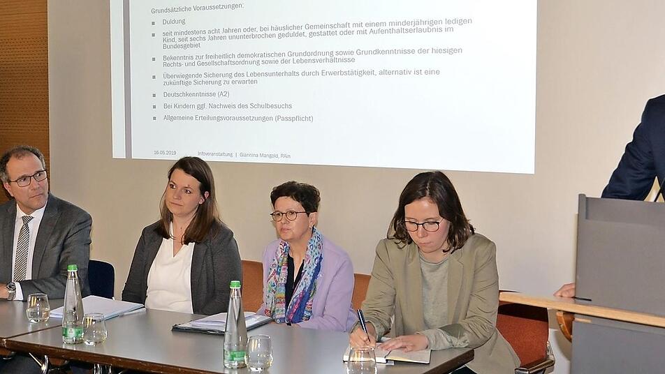 Rechtsanwältin Giannina Mangold aus Erlangen, die sich auf Migrations-, Asyl- und Ausländerrecht spezialisiert hat, knallte den Zuhörern in einem 20-minütigen Vortrag Rechtsbegriffe um die Ohren: Erwerbstätigkeitsverbot bei Asylbewerbern aus sicheren Herkunftsstaaten, Ermessen der Ausländerbehörde und Erlöschen der Ausbildungsduldung.