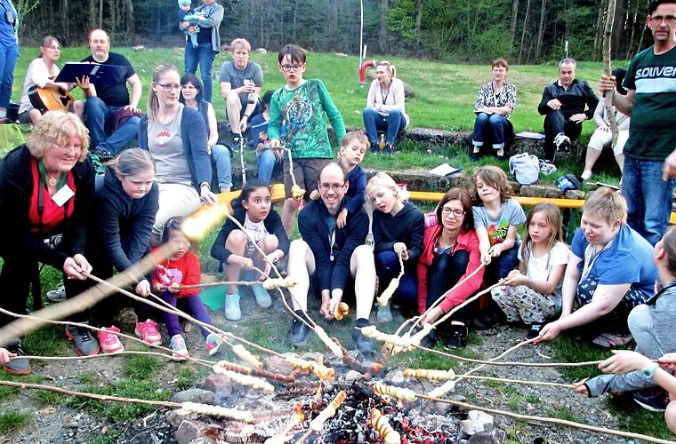 Am Abend hatten nicht nur die Kinder, sondern auch ihre Väter Freude daran, Stockbrote über dem Lagerfeuer zu rösten und mit Gitarrenbegleitung von Gudrun Zettelmeier, Stettfeld, Volkslieder und Schlager zu schmettern. Die "Gute-Nacht-Geschichte", vorgelesen von Christl Käb, Gleisenau, zog Erwachsene und Kinder gleichermaßen in ihren Bann.