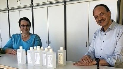 Das Team der Apotheke am Herzogspark hat rechtzeitig vor der schrittweisen Wiedereröffnung der Schulen dem Herzogenauracher Gymnasium fünf Liter selbst hergestelltes Desinfektionsmittel zur Verfügung ...