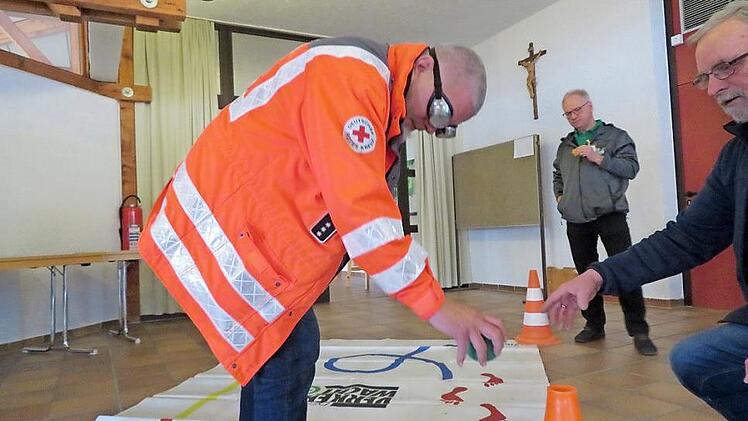 Zu Beginn der Veranstaltung im Mehrzweckraum der Adam-Riese-Halle waren es überwiegend ältere Verkehrsteilnehmer, die diese Chance nutzten. Im weiteren Verlauf der sechsstündigen Infotags kamen viele jüngere Besucher, teils ganze Familien. Erschrocken sind die "Testpersonen", die sich eine Rauschbrille aufsetzten: Schon bei 0,8 Promille schwankten sie deutlich, das Gehen auf einer geraden Linie war fast nicht möglich.