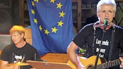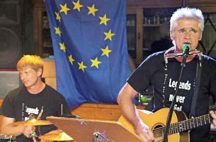 Die Gaststätte "Stübental" war bestens besetzt, denn Tom Sauer (rechts), Vorsitzender der "Humanitären Hilfe für Menschen in Not", hatte gemeinsam mit Georg Mäusbacher zu einem Benefizkonzert eingeladen. Beide begeisterten ihr Publikum und am Ende kann wieder ein guter Betrag für die Hilfsorganisation zusammen. Damit werden Not leidende Familien und Menschen in der Region unterstützt. Foto: Rainer Glissnik