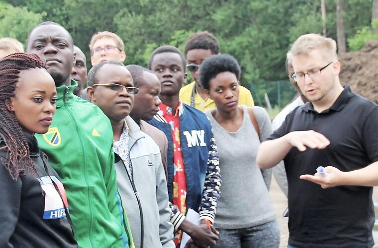 Forchheim gab sein Wissen im Bereich Müllwirtschaft weiter. Daniel Strauß, Abfallberater des Landkreises Forchheim, führte die Gruppe über die Deponie Gosberg. Dabei erläuterte er das deutsche System der Mülltrennung und wie die Deponie inzwischen so abgesichert wurde, dass kein Sickerwasser aus dem Müll im Grundwasser landet. Die jungen Erwachsenen waren dabei besonders beeindruckt, dass aus den aus der Deponie austretenden Methangasen Strom gewonnen wird. In einer Stunde wird dabei so viel Energie gewonnen wie ein durchschnittlicher Vier-Personen-Haushalt am Tag verbraucht. Nur eins konnten sie nicht verstehen: Warum auf dem Wertstoffhof all die Kühlschränke und Fernseher entsorgt werden. Die könne man doch bestimmt noch reparieren. In Tansania könne sich fast niemand einen Kühlschrank oder einen Fernseher leisten.