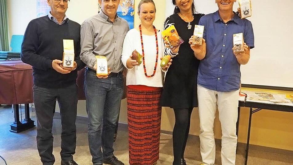 Vertreter der Steuerungsgruppe Fairtrade Town informierten in Anwesenheit der Stadträte Wolfgang Speyer, Alexander Koller und Christina Scheit über die Kissinger Kampagne.