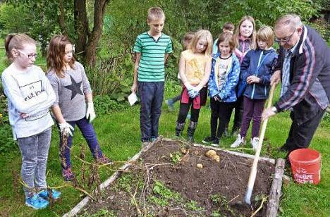Im Frühjahr vergruben die Buben und Mädchen Kartoffelstecklinge in die dafür vorbereiteten Beete. Im Sommer wuchsen sie prächtig heran - und am Wochenende war es nun endlich so weit. Es hieß ernten. Erfreulicherweise konnte man mit dem Ertrag zufrieden sein, und die Nachwuchsgärtner hatten erneut ihr Erfolgserlebnis.