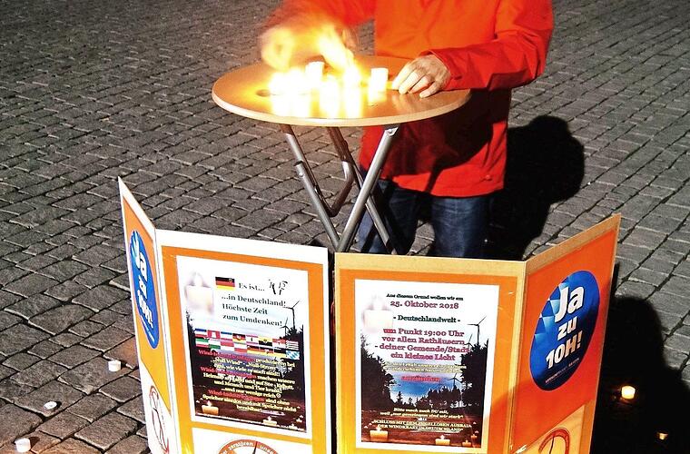 Forchheim wurde Teil eines deutschlandweiten Lichtermeers. Mit Kerzen hell erleuchtet war der Rathausplatz, als Mitglieder aus verschiedenen Vereinen wie dem VLAB (Verein für Landschaftspflege und Artenschutz in Bayern), Bundesinitiative Vernunftkraft und dem Verein für den Schutz des Naturparks Fränkische Schweiz mahnend darauf hinwiesen, wie gefährdet die Naturlandschaft und geschützte Tierarten durch den Bau von Windkraftanlagen seien.