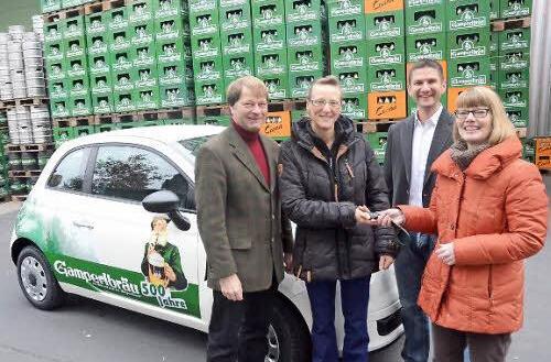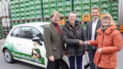 Die Geschäftsführer der Gampert-Bräu, Anette Höfner und Christian Höfner, gratulierten der glücklichen Gewinnerin und übergaben die Fahrzeugschlüssel mit dem Wunsch auf allzeit gute und unfallfreie Fahrt. "Insgesamt haben 18 000 Teilnehmer ihr Glück versucht und es sind mehr als 500 000 Codes über Internet bei uns eingegangen. Das war eine Resonanz so gut wie wir sie nicht erwarteten. Die meisten Einsendungen kamen aus Nordbayern und wir sind froh, dass der Hauptpreis, ein Fiat 500, im Landkreis Kronach geblieben ist", freuen sich auch die beiden Gampert-Bräu-Geschäftsführer.