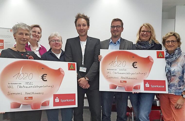 Der Betriebsrat und die IG Metall-Vertrauensleute bei Siemens Healthineers haben sich im betrieblichen Dialog für den Verein zur Wiedereingliederung psychisch kranker Menschen "Wabe" in Erlangen sowie für die "INSEL" - Beratung und Begegnung. Sozialpsychiatrischer Dienst - in Forchheim entschieden. Die Spendenübergabe erfolgte am in der IGM-Geschäftsstelle Erlangen.
