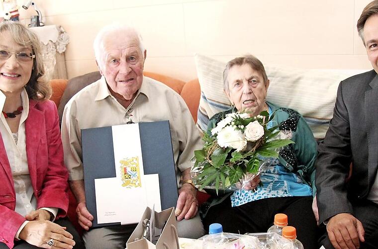 Das seltene Fest der eisernen Hochzeit feierten in Niederndorf Eleonore und Karl Mayer. Die beiden 87 Jahre alten Eheleute kamen 1968 aus dem Egerland nach Niederndorf und wohnen seither immer noch in der gleichen Wohnung. Vor 65 Jahren wurde das Paar in der Egerländer Wallfahrtskirche Maria Kulm in Nähe von Königsberg getraut, nachdem sie sich beim Tanzen in Katzengrün kennengelernt hatten.