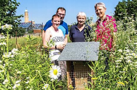 Sie erläutert, warum sie mit ihren ehrenamtlichen Helfern die Nisthilfe aufgestellt hat: "Um samenfestes Saatgut aus unseren verschiedenen Gemüsesorten zu gewinnen, sind wir natürlich auf die Bestäubung durch Insekten angewiesen und was liegt da näher, diesen tierischen Helfern auch ein optimales Zuhause anzubieten. Dabei sind wir auf die Nisthilfen der Lebenshilfe gestoßen. Wir sind erstaunt gewesen, dass schon nach zwei Wochen die ersten Bienen die Nisthilfe angeflogen haben und mittlerweile ganz viele Löcher gefüllt haben."