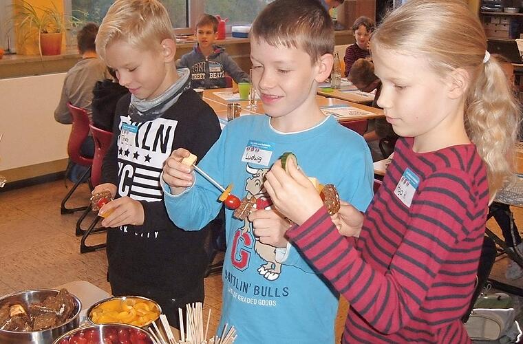 Ein Team der Edeka-Stiftung gestaltete mit Ernährungsservice-Mitarbeiterin Adelgunde Baier von Degen-Food Hemhofen und der Klassenlehrerin den Tag. Lebensmittel und Getränke wurden von Degen-Food zur Verfügung gestellt. Begonnen wurde mit einem gesunden Frühstück. Die Piratenspieße aus Vollkornbrot mit Kräuterfrischkäse, Gurken, Tomaten, Paprika und Gouda bereiteten die Kinder selbst zu.