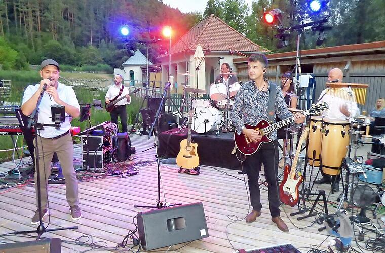Mit rund 250 Besuchern war das Open-Air-Konzert der Band "Phil callin", der Tribute-Band für Phil Collins und seine frühere Band Genesis, im Pottensteiner Felsenbad ein großer Erfolg.