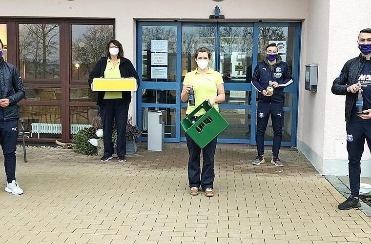 Eine besondere Überraschung bereitete die SpVgg Etzelskirchen den Mitarbeitern des BRK-Heims "Wohnen und Leben" in Etzels-kirchen. Die Mitglieder des Sportvereins wollten ihre Wertschätzung für die besondere Belastung ausdrücken, denen die Angestellten in der Altenpflege in Zeiten von Corona nun schon seit März ausgesetzt sind. Die Hygienevorschriften, das Arbeiten mit der Maske, all dies bedeutet zusätzliche Arbeit und Anstrengung zum ohnehin nicht einfachen Arbeitsalltag. Und so kamen sie bepackt mit Glühwein, Plätzchen, Lebkuchen und Punsch, und zwar alles hausgemacht, um die Mitarbeiter zu beschenken. Maria Stark vom Personalrat und Susanne Eckstein von der Ergotherapie nahmen die guten Gaben von der SpVgg entgegen und bedankten sich ganz herzlich auch im Namen der Heimleiterin Beate Bednarski.
