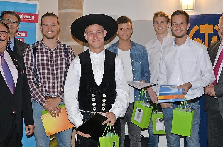 Der stellvertretende Handwerksmeister Christian Jaklin hob hervor, dass die Vertreter des Handwerks die zweitgrößte Fraktion im Forchheimer Stadtrat seien. Bürgermeister Franz Streit (CSU) unterstrich, dass Forchheim eine Stadt des Handwerks sei, der Mittelstand sei die Basis für Ausbildung und Weiterbeschäftigung. Der Präsident der Handwerkskammer für Oberfranken, Thomas Zimmer, sprach den 248 Betrieben in Stadt und Landkreis seinen Dank dafür aus, dass diese 482 Mitarbeiter ausbildeten. Der Vizepräsident des Zentralverbandes des Deutschen Handwerks begrüßte die Rückkehr von einigen Gewerken in die Meisterpflicht, wie Raumausstatter und Fliesenleger. Vor der Vergabe der Gesellenbriefe wurden die fünf besten Auszubildenden geehrt und mit einem Geldpreis der Ludwig-und-Therese-Betz-Stiftung bedacht: Arik Aaron Bartels, Philipp Eicke, Lukas Kirchmann, Sandro Geist, Christopher Wunder und Karl Fleischmann.
