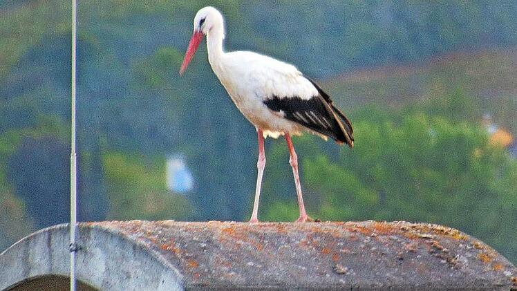 Etwa eine Stunde lang saß dieser Storch auf einem Hausdach in der Leo-Weismantel-Straße in Münnerstadt. Hoch droben auf dem Kamin trippelte er immer wieder ein paar Schritte auf und ab und tat so, als...
