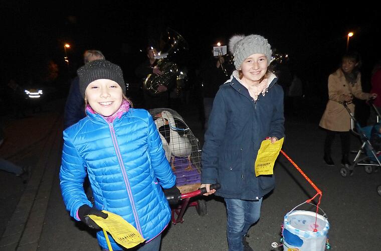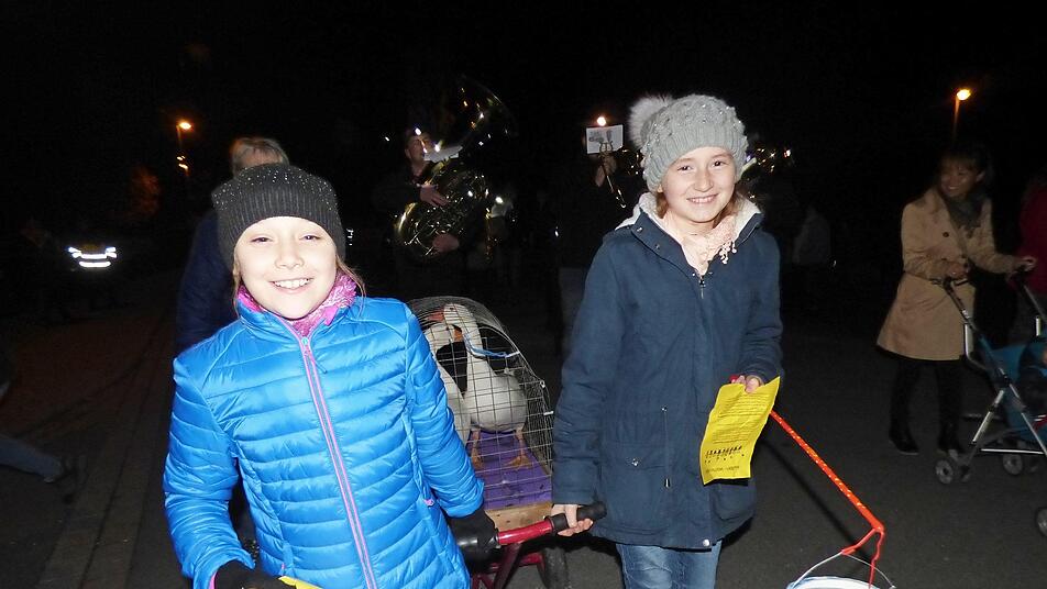 Unterleinleiter — Wie jedes Jahr lud das Kinderhaus St. Josef in Unterleinleiter zum Martinsumzug ein, bei dem es diesmal gleich mehrere Premieren gab. Erstmals traf man sich auf dem Parkplatz vor dem Sportheim, um von dort zum Rathaus und über die Angerbrücke wieder zurück zum Sportheim zu ziehen, wo dann auch das Martinspiel stattfand. Erstmals wurde auch nicht während des Laternumzugs gesungen, sondern es gab zwei Stationssingen vor dem Rathaus und bei der Angerbrücke. Nachdem die Vorschulkinder das Laternenlied "Heute leuchten die Laternen" gesungen hatten setzte sich der große Laternenzug mit St. Martin hoch zu Roß in Bewegung. Seit sechs Jahren stellt Tamara Knoll nun schon den St. Martin dar. Eine Besonderheit beim Laternenumzug in Unterleinleiter sind auch die zwei Martinsgänse die von Kindern auf einem Leiterwagen gezogen werden. Dies ist seit 18 Jahren schon Tradition, sagt Brigitte Knörl, der die Gänse gehören. Nach dem traditionellen Martinspiel lud der Elternbeirat noch zu Glühwein und Wienerle ein und selbstverständlich gab es auch wieder die Ladara Martinsmännla.