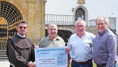 Jagdvorsteher Uwe Haase und Kassenwart Bernhard Haas überreichten den symbolischen Scheck an Kirchenverwaltungsvorstand Pfarrer Pater Flavian Michali und Kirchenpfleger Georg Lang.