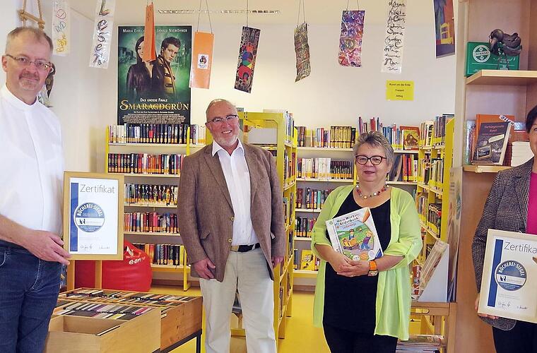 Die Übergabe des Zertifikats erfolgte am Mittwoch im kleinen Rahmen durch Stadtpfarrer Thomas Teuchgräber. Anlässlich der erneuten Auszeichnung war es diesem ein großes Anliegen, allen Helferinnen zu danken. Gedacht sei die Bücherei für Menschen jeden Alters, denen er den "Büchertreff" nur wärmstens empfehlen könne.