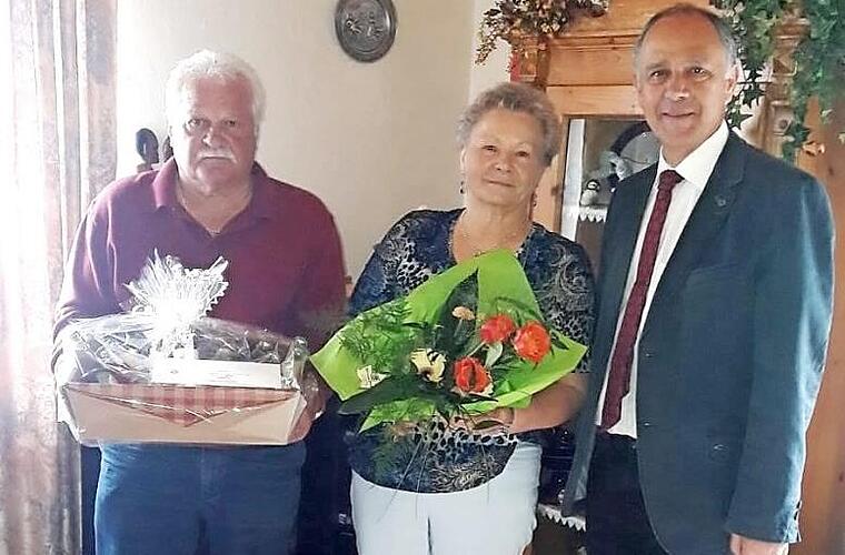 Marktleugasts Bürgermeister Franz Uome gratulierte Marga und Günther Opel ganz herzlich und überreichte Blumen und einen Präsentkorb.
