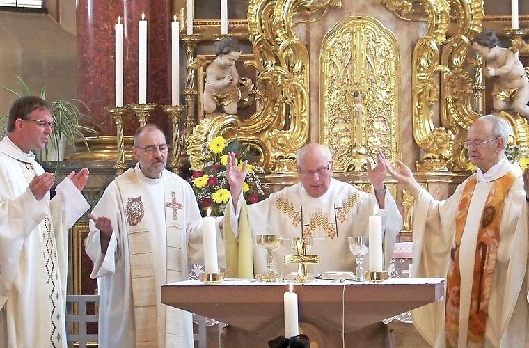 Edmund Kräck, Pfarrer im Ruhestand, feierte sein 50-jähriges Priesterjubiläum in seiner Heimatpfarrei Schlüsselfeld St. Johannes der Täufer mit einem Festgo...