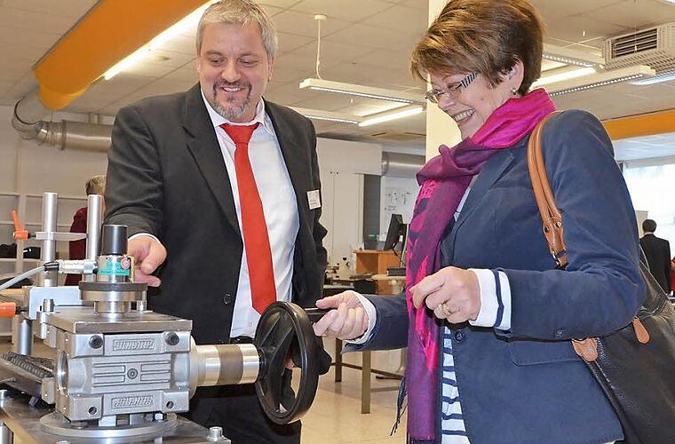 für die Wirtschaftsförderung zuständig ist. Geschäftsführer Daniel Grimm führte die "Baubürgermeisterin" durch die Räume und erklärte, was dort alles möglich ist. "Man fährt immer vorbei, und sieht das Firmenschild, aber weiß gar nicht, was hier eigentlich gearbeitet wird", sagte Elke Protzmann. Das änderte Daniel Grimm gründlich. Ausführlich erklärte er, wie Messgeräte vom Drehmomentschlüssel bis zum Druckprüfer hier überprüft und kalibriert oder Werkstücke von Kunden dreidimensional vermessen werden.