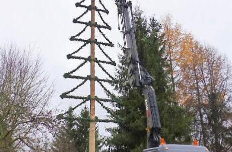 Der größte Christbaum Oberfrankens mit einer Höhe von 26 Metern steht seit dem vergangenen Samstag in Marienweiher, dem ältesten Wallfahrtsort der Region. Mit seinem Lkw-Kran half Stefan Hanke von der gleichnamigen Zimmerei aus Steinbach, den drei Tonnen schweren Koloss aufzurichten. Alles in allem war der bis zu 18-köpfige Initiativkreis Marienweiher vorher nicht weniger als 20 Stunden damit beschäftigt den Baum zu schmücken und die Beleuchtungsketten um die Zweige zu binden. Ab dem kommenden Samstagabend um 20 Uhr wird der Baum mit seinen 15 000 LED-Lichtern hell erstrahlen. Für Essen und warme Getränke ist gesorgt.