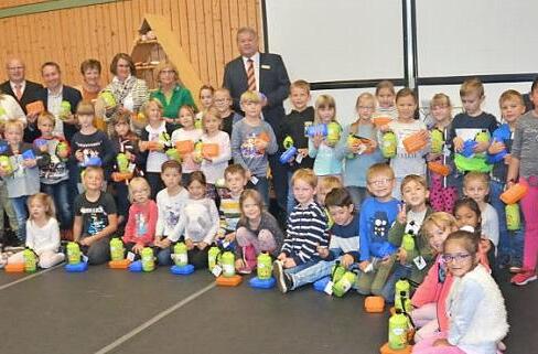 41 Abc-Schützen der Grundschule Rodachtal erhielten in der Rodachtalhalle sog. Emilflaschen und Brotdosen und bekommen so Umwelt- und Klimaschutz täglich mit auf den Schulweg. Die Schulanfänger bekomm...