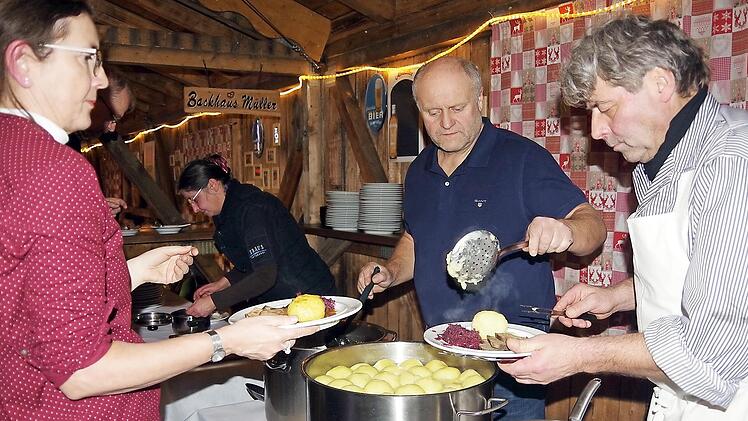 Dies gilt auch für den anschließend aufgetischten Hauptgang mit Rinderbraten, Klößen und Blaukraut, während die kleinen Nachspeisen-Törtchen schon bedeutend leichter an den Mann beziehungsweise an die Frau zu bringen sind ... In die Rolle der Servicekräfte schlüpften die Rotarier, um rund 100 Bedürftige aus dem Landkreis Kronach mit einem festlichen Drei-Gänge-Menü zu bewirten.