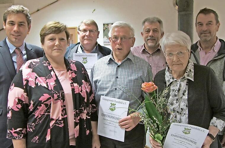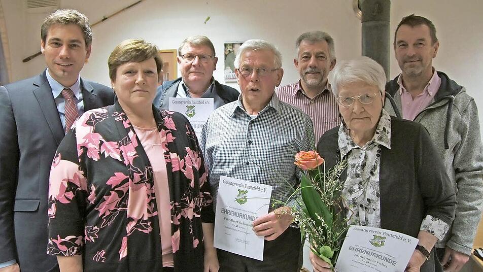 Der Pautzfelder Gesangverein (GV) setzt auf Kontinuität und hat ein neues Vereinsheim im Blick. Bei den Neuwahlen an der Jahreshauptversammlung wurde der Vorstand bestätigt. Vorsitzende bleibt Claudia Rattel, ihre Stellvertreterin ist Monika Kohlmann. Schriftführer ist weiterhin Manfred Schneider und die Kasse bleibt in den Händen von Nicole Holler. Nur Melanie Dittmann rückt in die Vorstandsriege auf. Sie ist neben Manuela Kupfer neue Kassenprüferin. Für langjährige Mitglieder gab es Auszeichnungen. Friedbert Schneider erhielt eine Ehrenurkunde für 60 Jahre Mitgliedschaft im Gesangverein, Josef Schuberth für 50 Jahre, Wolfgang Schrauder und Klaus Denzler für 40 Jahre sowie Annemarie Fabry für 25 Jahre. Für die weitere Entwicklung des Vereins wurde in der Mitgliederversammlung ein wegweisender Beschluss gefasst: im möglichen finanziellen Rahmen wird sich der GV an den Erneuerungsmaßnahmen des Gemeindehauses beteiligen. Ziel ist, künftige Singstunden, Veranstaltungen und Vereinstermine im Gemeindehaus abzuhalten.