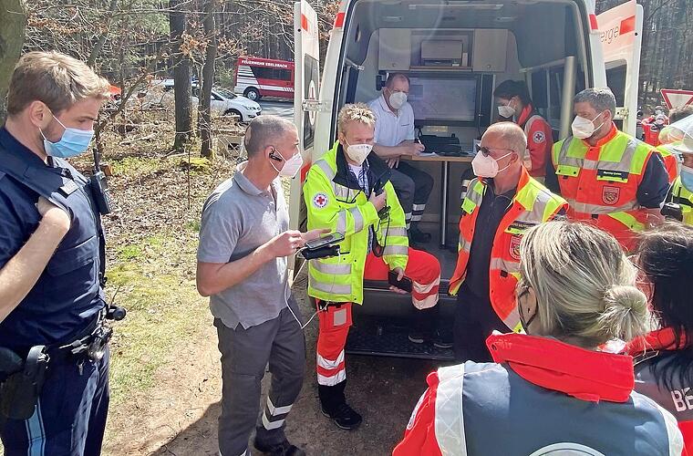 Gegen 12.35 Uhr erreichte die Inte-grierte Leitstelle die Mitteilung über einen Unfall durch ein sogenanntes eCall-System, das im Auto installiert ist und bei heftigem Aufprall automatisch auslöst. Daraufhin wurden Rettungsdienst , Notarzt und Feuerwehr zur vermeintlichen Unfallstelle alarmiert. Diese lag in einem Waldgebiet zwischen Stettfeld und Lauter unweit der Grenze zwischen den Landkreisen Haßberge und Bamberg. Die Rettungskräfte fanden einen Personenwagen vor, der neben einem Feldweg offenbar mit höherer Geschwindigkeit gegen einen Baum gefahren war. In dem Auto hatten die Airbags ausgelöst und es waren Blutspuren zu sehen. Von dem oder den Insassen fehlte allerdings jede Spur.