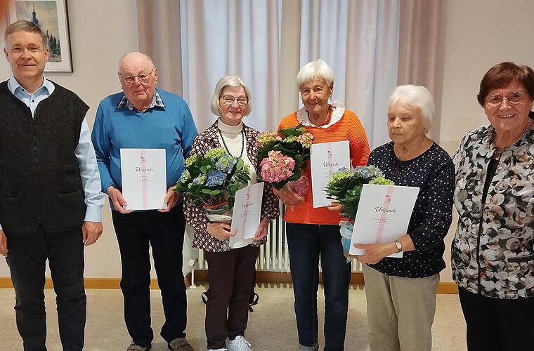 Dann wurden folgende Mitglieder geehrt: Rita und Horst Smola sowie Theresia Schenk für 60-jährige Mitgliedschaft, Helene Krines für 50 Jahre.