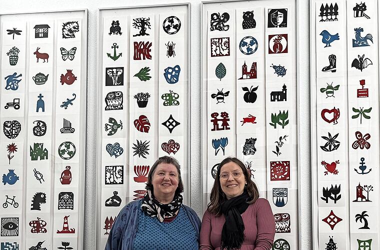 Unter anderem hatten sich auch Landrat Wilhelm Schneider und der Hofheimer Bürgermeister Alexander Bergmann am Projekt beteiligt. Die Teilnehmer konnten ihre eigenen Ideen in eine künstlerische Formensprache bringen. Die dabei entstandenen Druckvorlagen verwandelte die Künstlerin anschließend mit der Druckpresse in kleine Grafiken.