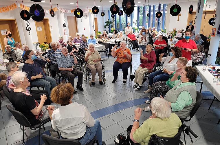 Ein besonderes Highlight boten einige Bewohner und Bewohnerinnen, die gemeinsam mit dem Betreuungsteam einen Sitz-Tanz zum Lied „Rote Lippen soll man küssen“ präsentierten. Sie sorgten damit für gute Laune und regten zum Mittanzen an.