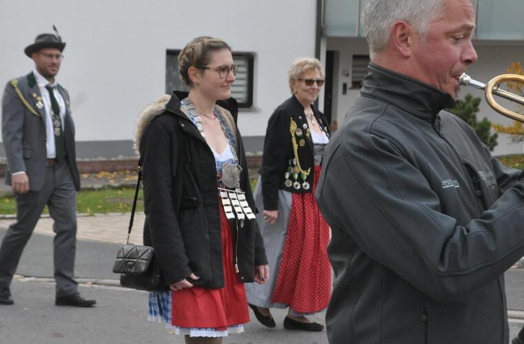 Annika Lurz von der Schützengesellschaft Junkersdorf ist in diesem Jahr Schützenkönigin im Schützengau Schweinfurt geworden. Ihr zu Ehren zogen am Kirchweihwochenende die Mitglieder der Schützengesellschaft unter den Klängen der Blaskapelle Pfaffendorf vom Feuerwehrhaus zum Schützenhaus, wo sie Schützenmeister Florian Gräbner begrüßte und ihr unter dem Beifall der Gäste einen Strauß Blumen überreichte.
