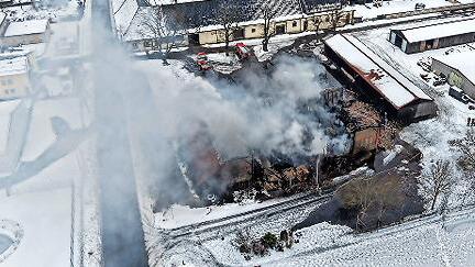 Nach dem Großbrand einer Scheune mit eingelagerten Reifen in Eyrichshof informiert das Landratsamt Haßberge über den aktuellen Sachstand und gibt vorbeugend Hinweise zu möglichen Auswirkungen und notwendigen Vorsichtsmaßnahmen für die Bevölkerung.