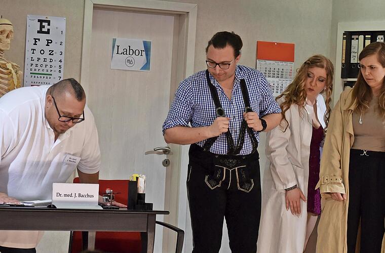 Auch die unbeholfene Bauerstochter Chantal Bollermann (Kerstin Heusinger), ihr Bruder Bodo (Thorsten Hufnagel) und Vater Schorsch (Wilfried Autsch) geben sich in der Praxis von Dr. Bacchus die Klinke in die Hand und sorgen für zusätzlichen Wirbel. Die liebestolle Dauerpatientin Wilma Öfter (Sonja Kaffer) macht ihrem Namen alle Ehre: Eigentlich sucht sie Hilfe wegen der Probleme ihres Mannes – was mehrfach zu peinlich-komischen Situationen führt.