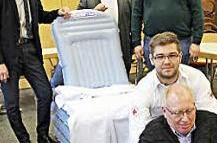 Es sei auch einfach zu handhaben. Ein weiterer Vorteil sei, dass mit dem Hebekissen eine am Boden liegender Mensch von einem Helfer allein aufgerichtet werden könne. Dank seiner integrierten Rückenlehne gebe das Hebekissen dem Patienten auch das sichere Gefühl, auf einem Stuhl zu sitzen. Eingesetzt werden kann das Hebekissen für Personen bis zu 320 Kilogramm.